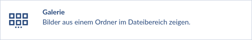 In den Galerie-Blocks werden alle Bilder aus einem Ordner des Dateibereichs in einer Karussellansicht angezeigt.