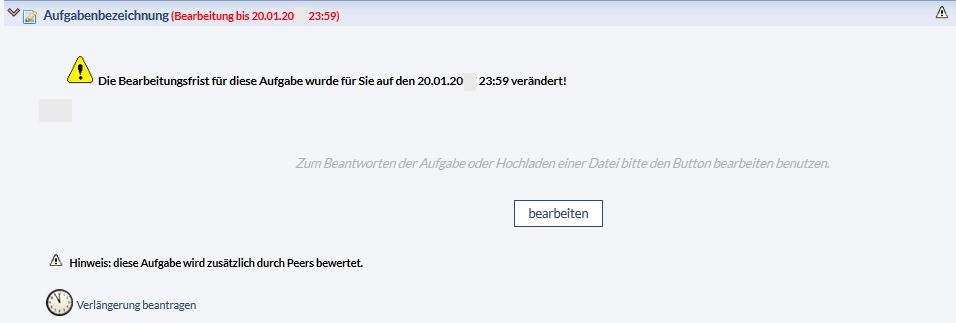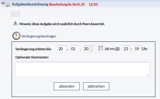 Kann eine Verlängerung beantragt werden, wird dies mit einer Uhr angezeigt, wenn Sie die Aufgabe auswählen.