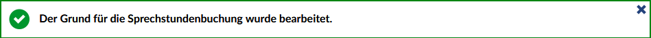 Der aktualisierte Grund erscheint neben dem gebuchten Termin in der Terminübersicht.