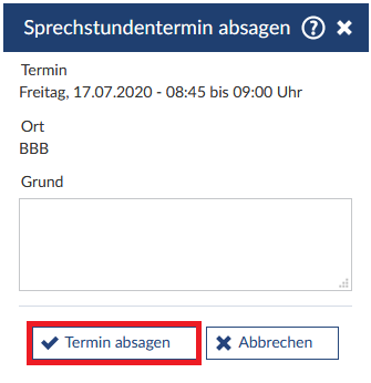 Sprechstundentermin absagen