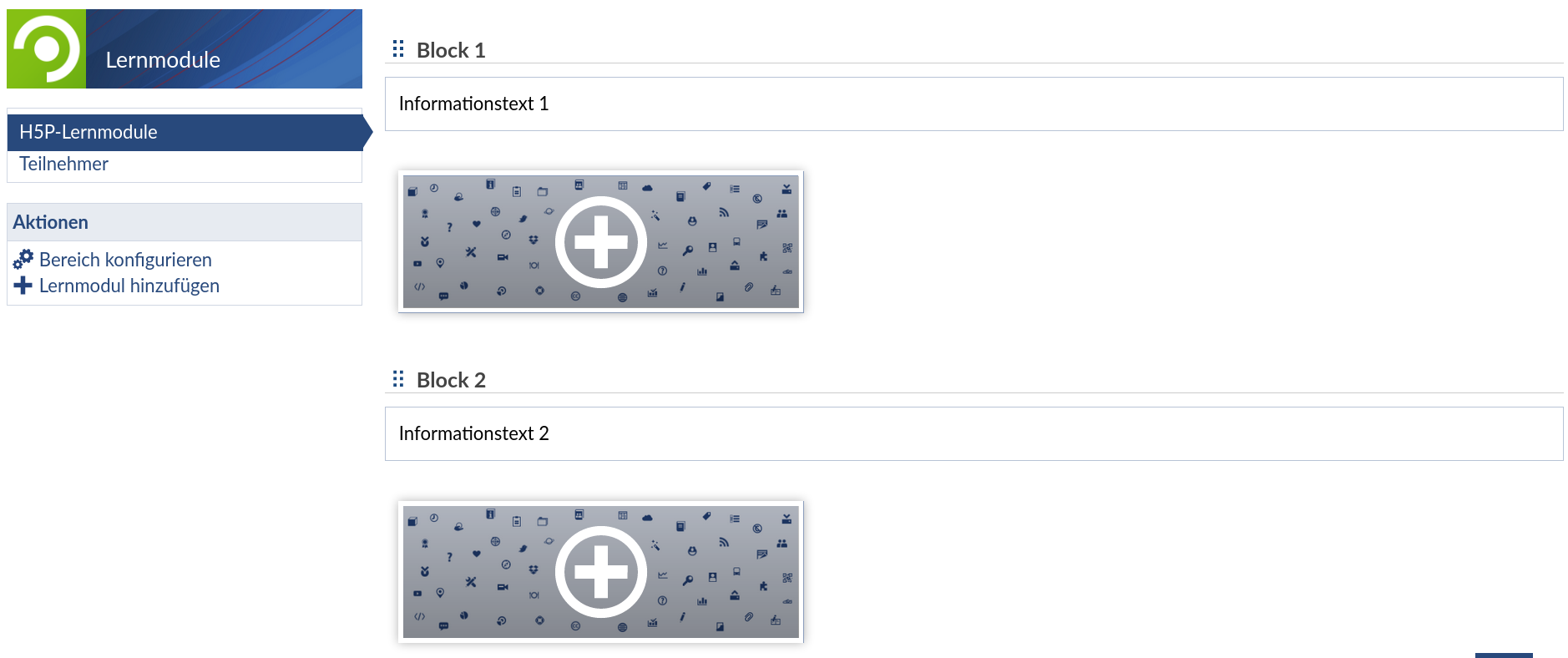 Sie haben die Möglichkeit Ihre Lernmodule in Blöcken zu organisieren. Um einen neuen Block hinzuzufügen, wählen Sie entweder
