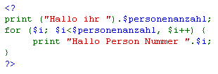 Der Code-Tag ist ein "Shortcut" hierfür. Der Text wird diktengleich dargestellt, damit Einrückungen korrekt angezeigt werden und Stud.IP wird davor bewahrt, den Programmcode als Formatierungsanweisung anzusehen. Falls der Code überdies PHP-Code ist, kümmert sich Stud.IP sogar um ein passendes Highlighting.