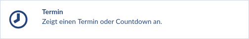 Der Termin-Block kann einen Termin als Datum oder als Countdown bis zu einem bestimmten Datum anzeigen.