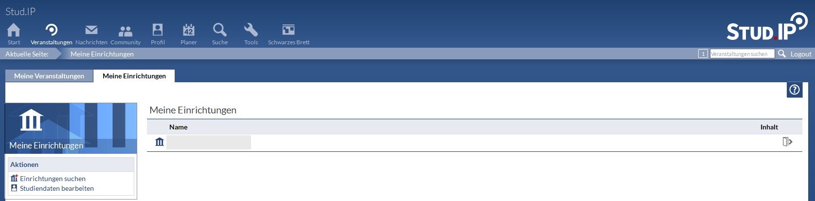 Aus verschiedenen Gründen kann es vorkommen, dass eine Zuordnung zu einer Einrichtung geändert werden soll. Um die Zuordnung zu wechseln, können Sie unter dem Menüpunkt "Profil", unter der Registerkarte "Nutzerdaten", in der Navigation, die "Studiendaten" auswählen. In dieser Ansicht wird Ihnen Ihr Studiengang angezeigt, sowie die Einrichtung der Sie zugeordnet sind. Um sich einer Einrichtung zuzuordnen, wählen Sie die entsprechende Einrichtung aus der Liste und klicken auf "übernehmen". Das Austragen erfolgt mit dem Setzten eines Häkchens bei "austragen", rechts neben der Veranstaltung. Klicken Sie anschließend wieder "übernehmen".
