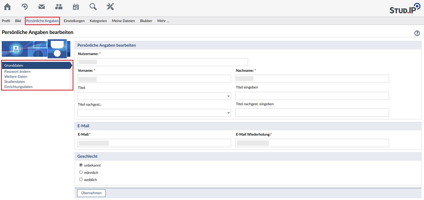 Ihre Nutzerdaten können Sie über die Registerkarte "Persönliche Angaben" ändern.