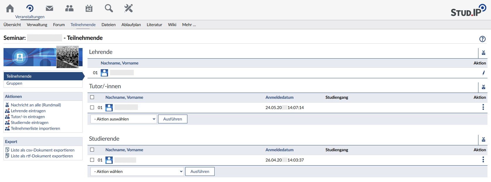 Mit dem Status "Dozent" haben Sie verschiedene Möglichkeiten, Ihre Teilnehmenden zu verwalten.