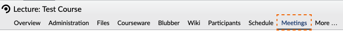 Nachdem "Meetings" zu einem Kurs hinzugefügt wurde, sollte der Navigationseintrag in der Kursnavigationsleiste zu sehen sein und Sie können dorthin navigieren.