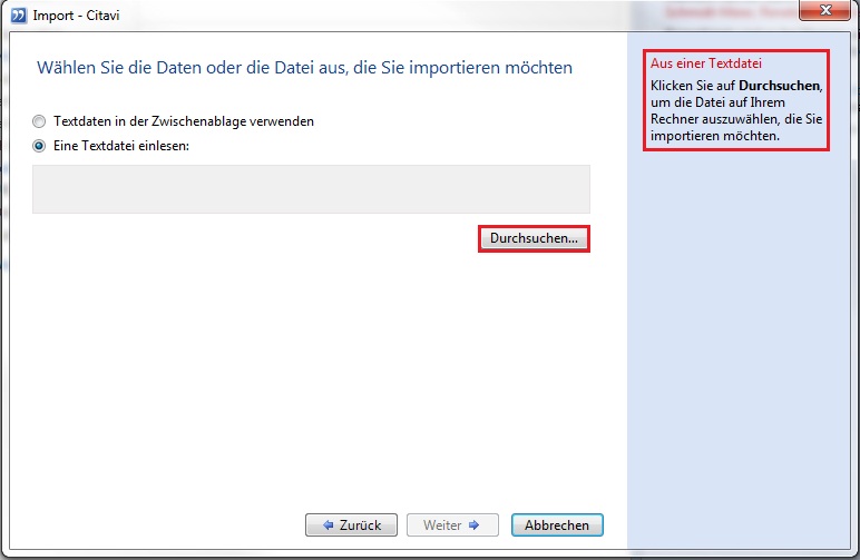 2. Wählen Sie im sich öffnenden Fenster "Aus einer Textdatei". Klicken Sie auf "Weiter".